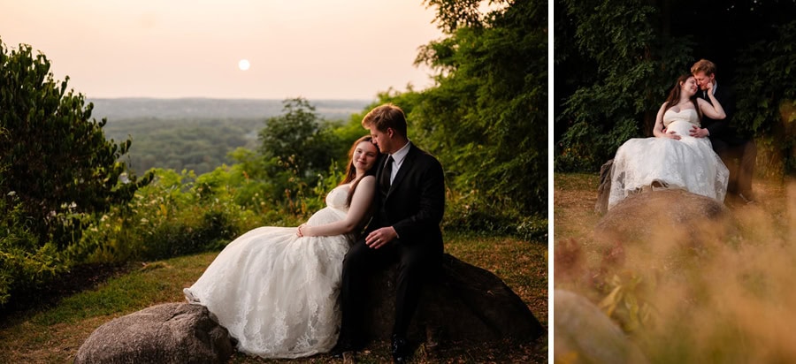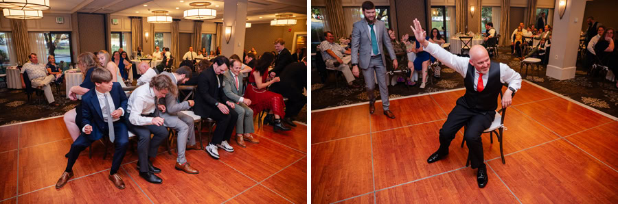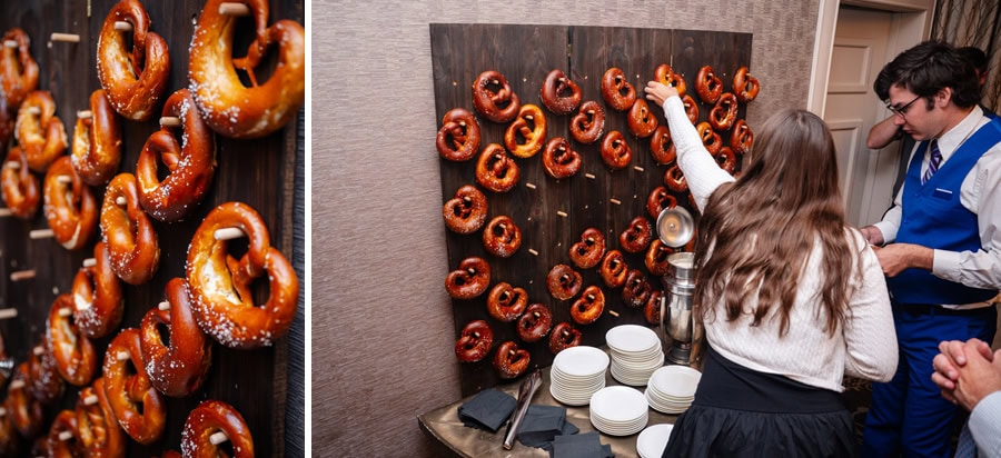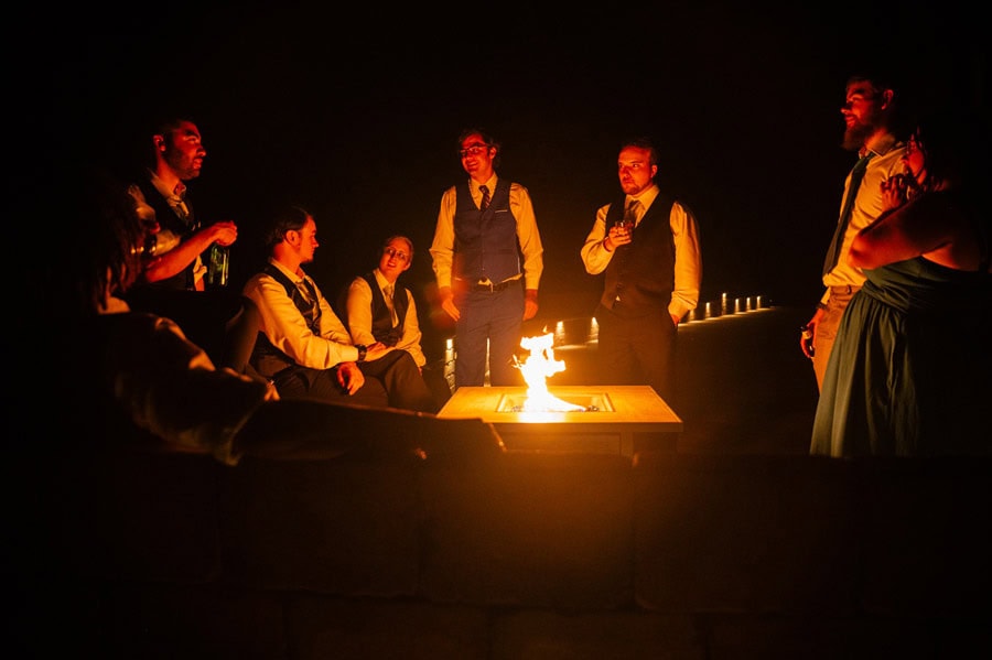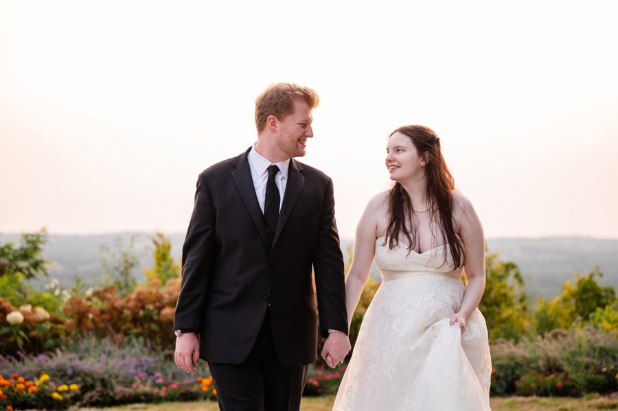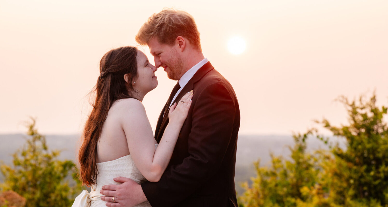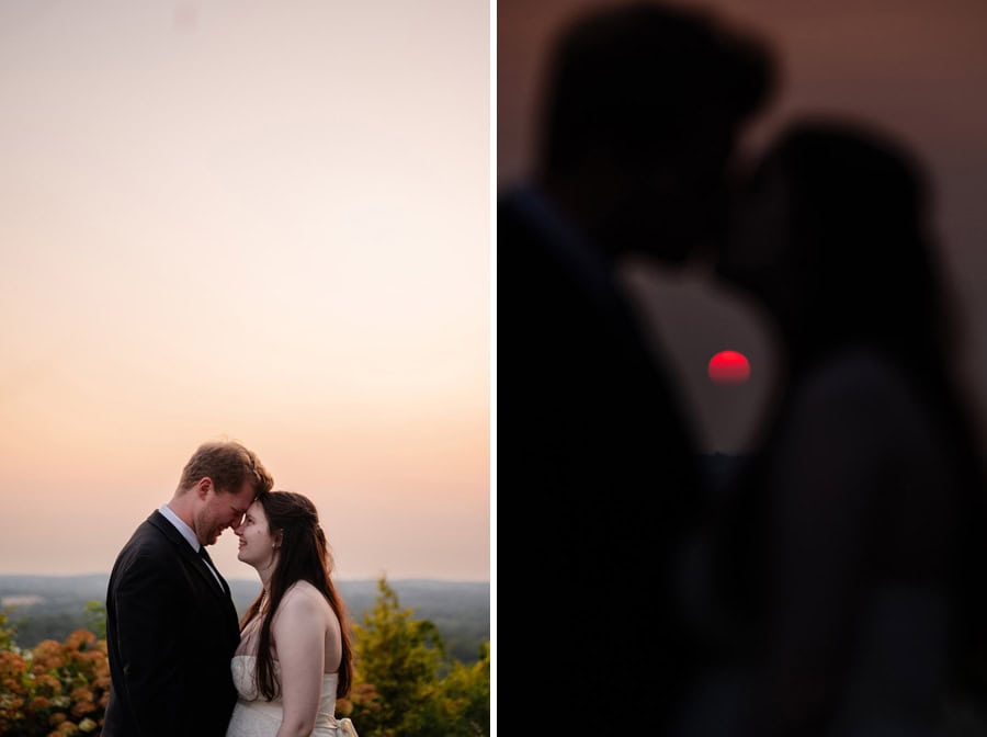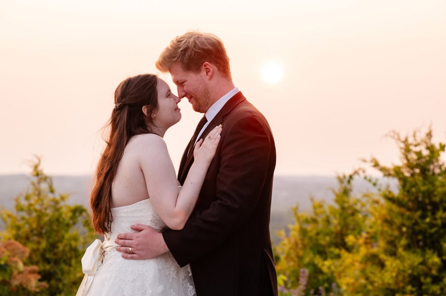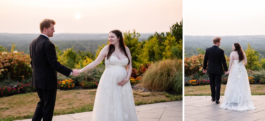 That same spirit followed them into the reception, where laughter never seemed to stop. From a hilarious game of musical chairs to the best man and maid of honor delivering speeches that had everyone smiling, the celebration felt effortless and full of connection. Guests enjoyed unique touches like a pretzel wall and a cozy campfire, creating spaces to gather, relax, and celebrate together. As the sun began to set, Alix and TJ slipped away for a quiet, intimate moment, taking in the day as the sky glowed a deep orange around them. It was a perfect pause in the middle of such a vibrant celebration, one that captured not only the beauty of the setting, but the depth of what the day meant to them.