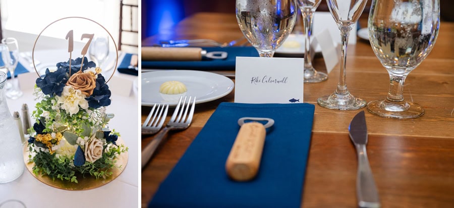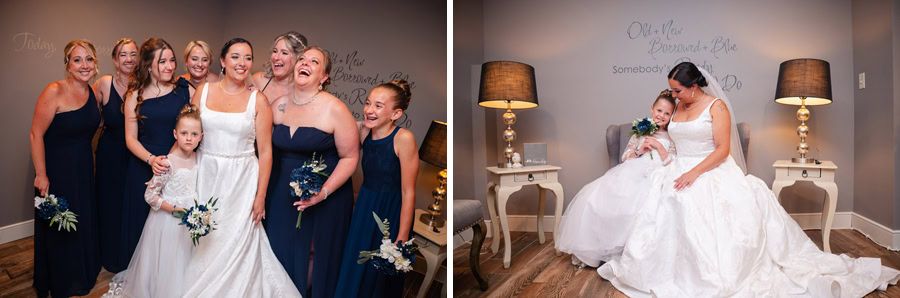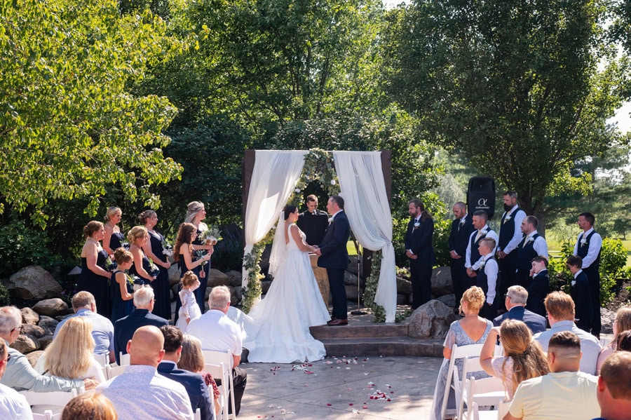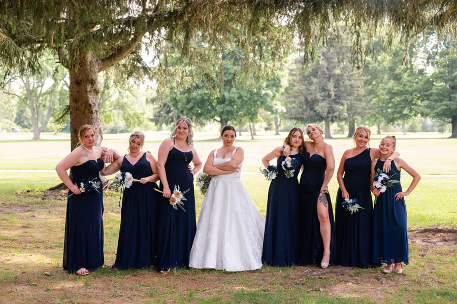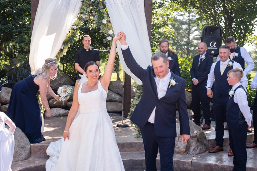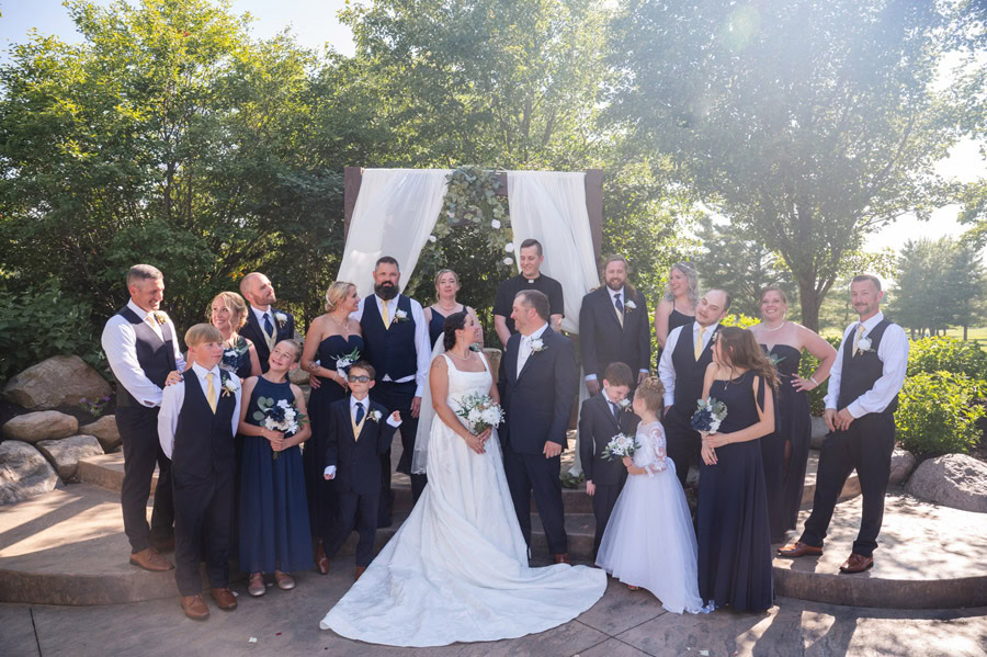 Brandi and Zack’s wedding day was filled with anticipation, heartfelt moments, and a deep sense of joy as they celebrated the beginning of their next chapter together. From the start, they were most excited for that unforgettable walk down the aisle, finally seeing each other and taking it all in before celebrating alongside their closest friends and family. Their venue was the perfect fit: beautiful, comfortable, and thoughtfully chosen. The elegant color palette of navy blue, gold, cream, and white created a timeless atmosphere, while the personal touches made the day uniquely theirs. Brandi and Zack poured so much love into the details, handcrafting all of their flower arrangements and bouquets, and even creating a wedding website where guests could follow along with their story. Having their longtime friend Andy officiate made the ceremony even more meaningful, adding a layer of familiarity and emotion to an already special moment.