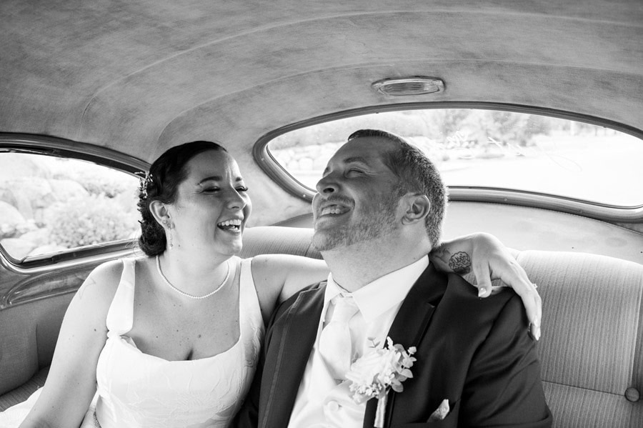 As the celebration transitioned into the reception, excitement built for some of their most anticipated moments; being introduced as husband and wife and sharing their first dance together. The evening was filled with incredible food, including a served dinner with options like filet mignon, blue crab stuffed haddock, peach orchard chicken, and Thai chili tofu, along with signature drinks named after their beloved pups, Charlie and Cooper. Their wedding party reflected the beautiful blend of their lives, made up of friends, family, and kids, bringing an extra sense of warmth and energy to the day. One of the most memorable touches was the classic car they rented, which made for stunning photos and a stylish send-off at the end of the night. Every moment of their celebration felt genuine and joyful, a true reflection of who Brandi and Zack are together. We wish them all the best!