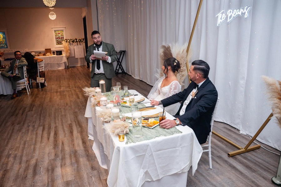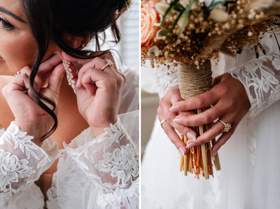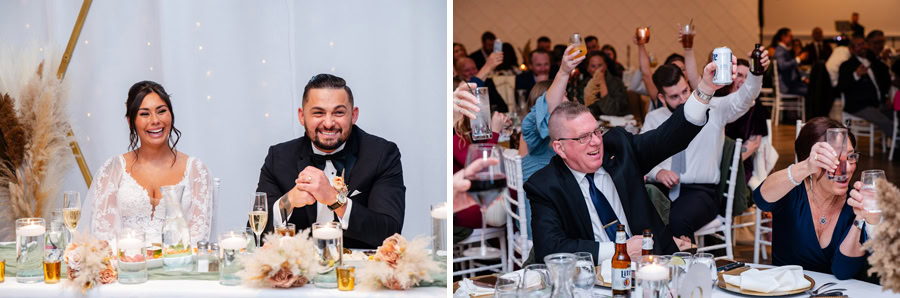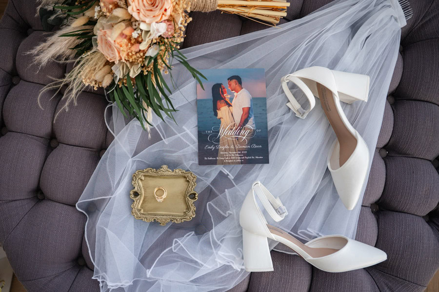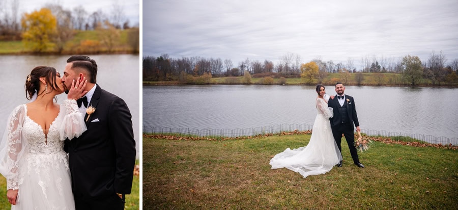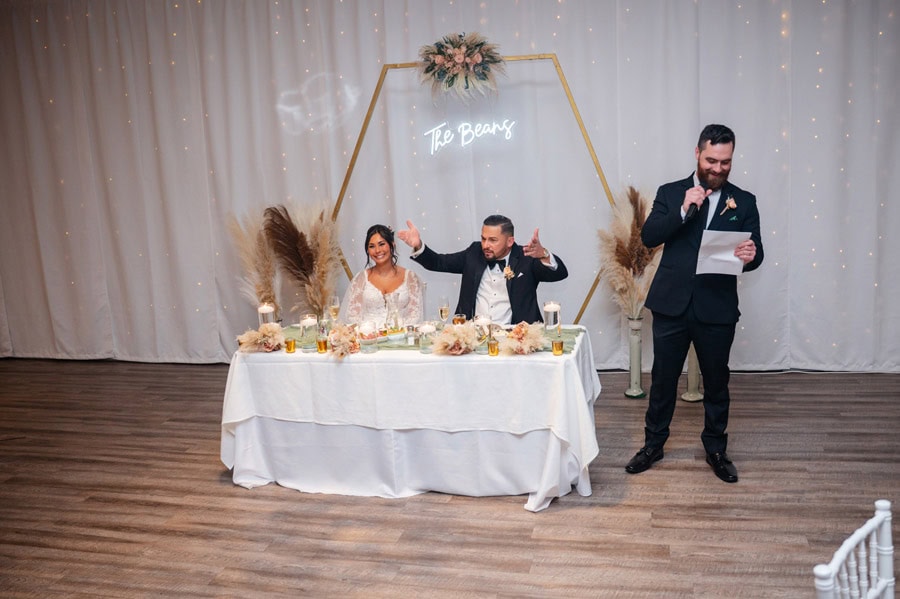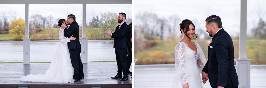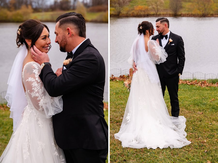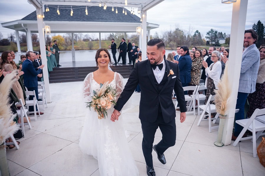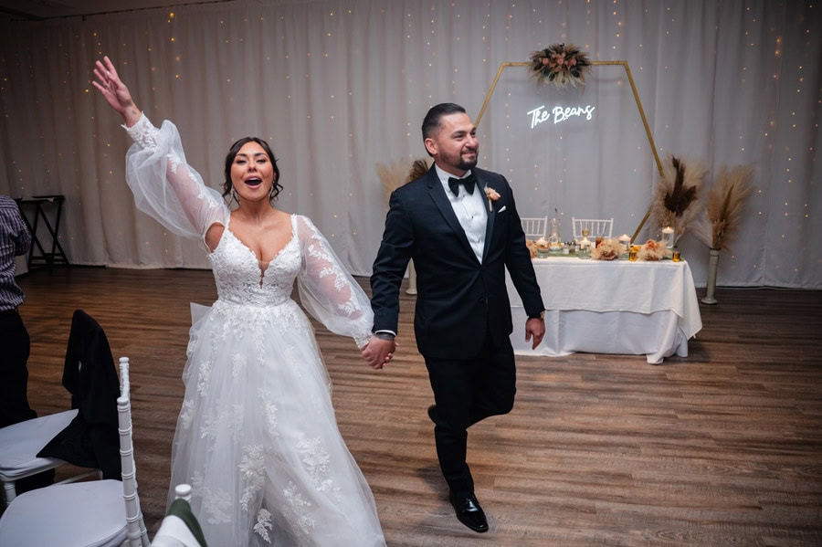 Emily and Damian’s November wedding at the Ballroom at Carey Lake was the perfect blend of heartfelt emotion and joyful celebration. They exchanged private vows together before the ceremony which had all of us crying. Family and friends played such an important role in their day, and you could feel that closeness in every hug, laugh, and tear. They warmed each other up with custom blankets for the outdoor ceremony, which set the stage for one of the most powerful moments of the day. Damian was in tears as Emily walked down the aisle to become his bride, and family and friends erupted as they officially tied the knot.